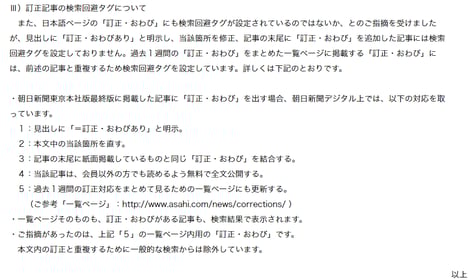 2014年8月22日に慰安婦問題に関する英文記事を複数配信しました。その際、記事に検索回避タグを設定し、社内の確認作業を経たのちにこのタグを解除して一般公開しました。