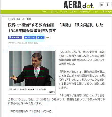AERAは「民主党政権」のときも、「政界で教育勅語が『復活』しようとしている」なんて書きましたっけ?