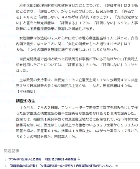 50%が「女性の閣僚を無理に増やす必要はない」ではなかったのでしょうか?