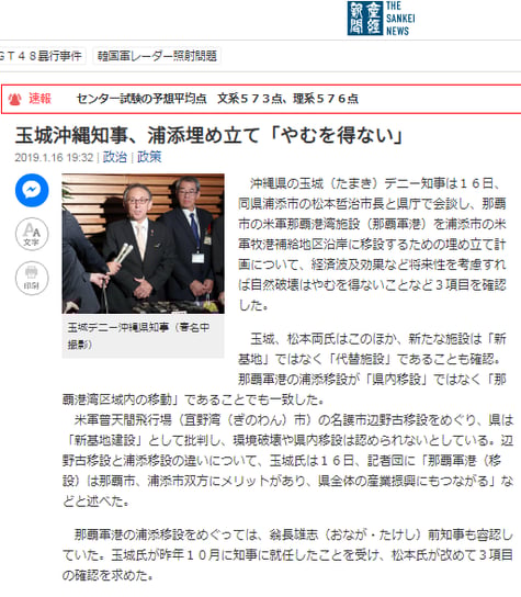 仮に普天間飛行場の辺野古移設を「新基地建設」と呼ぶのなら、那覇軍港の牧港補給地区への移設も「新基地建設」に他ならないのに、この翁長氏や玉城氏の二枚舌を問題視しない有権者がいることにブログ主には理解できません。