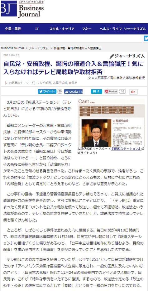 Journal(ビジネスジャーナル)などのパヨク系メディアは、「安倍政権が言論弾圧している」とて云いながら「もりかけ」を1年半以上追求するなど政権批判を行って来ている。
