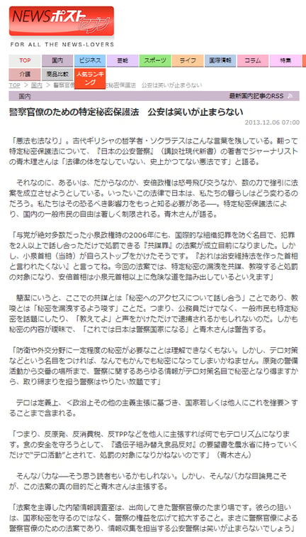 特定秘密保護法・マスコミのトンデモ報道に騙されるな(2013.12.20)