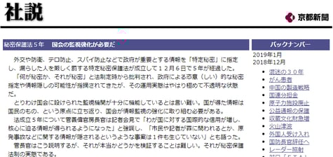 とりわけ国会に設けられた監視機関が十分に機能しているとは言い難い。国が得た情報は国民のもの、という原点に立ち返り、国会が情報監視の強化に取り組む必要がある。