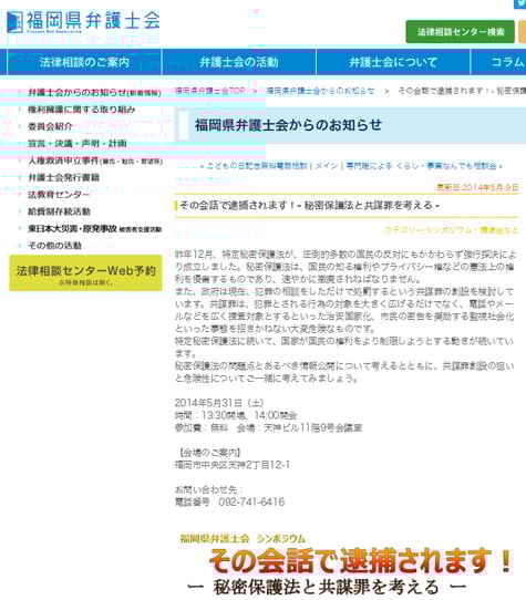 例えば、福岡県弁護士会の「その会話で逮捕されます!」など、果たして所属弁護士の総意なのでしょうか?