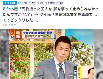 仮に視聴者が、同じ事を言っても 私はそれを無知だとは思いません。 ただ、3カ月前に富山の警官2名が 殺傷された事件を報道していたはずの お前らが何を生ぬるい話してんだ!? って、そういう怒りなんですよ。