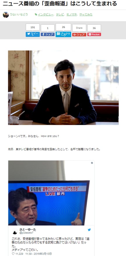 先日、某テレビ番組が首相の発言を歪曲したとして、各所で話題になりました。