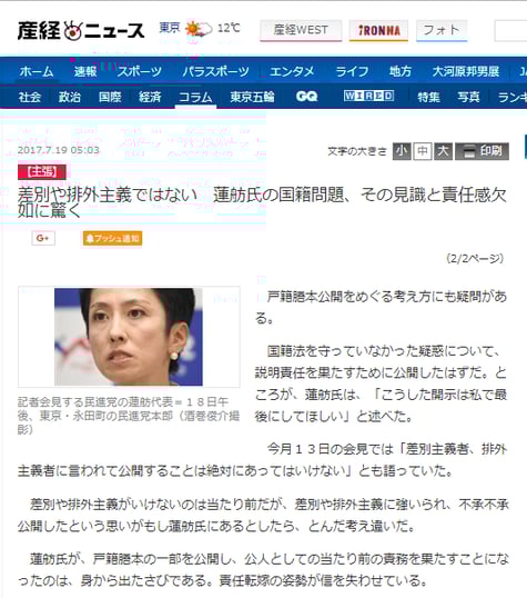 差別や排外主義ではない 蓮舫氏の国籍問題、その見識と責任感欠如に驚く