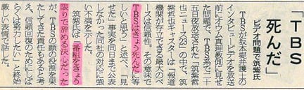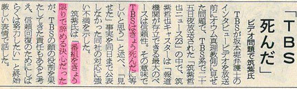 ついでながら、放送日より十日ほど前の2月27日には、オウム真理教の麻原彰晃被告に死刑判決が下されていたが、わざわざこの時期に「隠す… 失敗 不適切な対応…」などと特集を組むのであれば、 坂本弁護士一家殺害事件のきっかけとなったTBSビデオ事件についての「隠す」「不適切な対応」も当然取り上げるのが、正常な感覚というものであろう。もっとも、自分たちの失敗を隠したくなるのは 人間の性であるから、私も「サンデーモーニングが自らの不祥事を反省するまでは他人の失敗を批判する資格などない」とまで言うつもりはない。しかし、他の時期ならともかく、死者まで出した自分たちの不祥事が関連するニュースが二つまでも存在するこの時期を狙ってわざわざ他人の失敗のみをあげつらう特集を組むような連中に、「邪悪」や「異常」以外の相応しい言葉をみつけることは難しい。関係者全員、精神科医の診断を受けるべきレベルであろう。