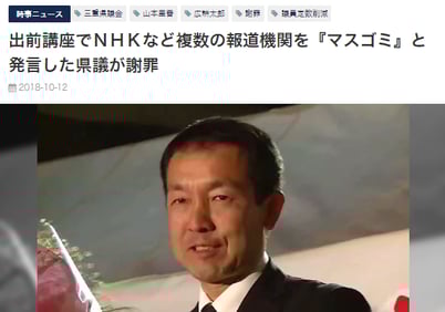 NHKなど複数の報道機関を「マスゴミ」と発言した県議、謝罪