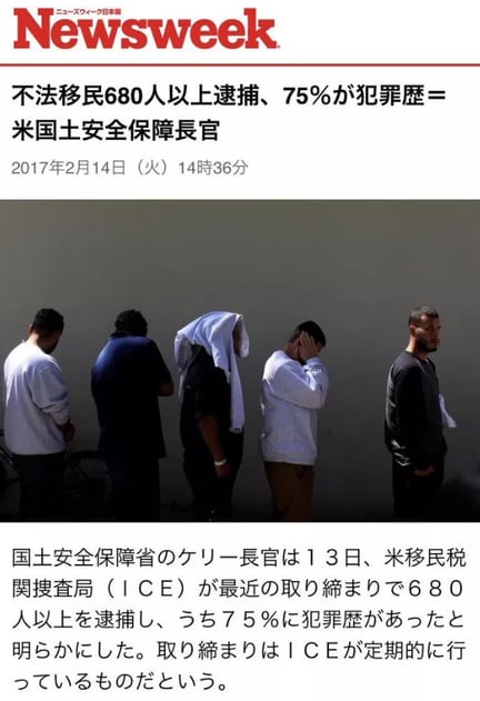 国土安全保障省のケリー長官は13日、米移民税関捜査局(ICE)が最近の取り締まりで680人以上を逮捕し、うち75%に犯罪歴があったと明らかにした。取り締まりはICEが定期的に行っているものだという。
