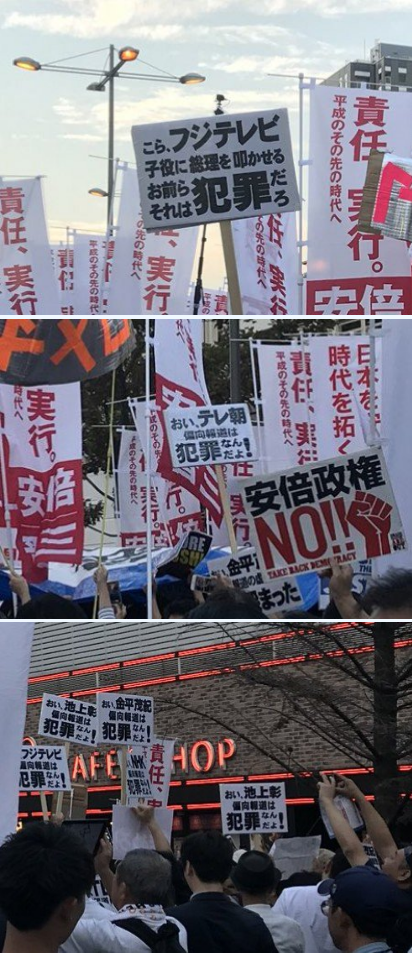 しばき隊など活動家プロ市民による「安倍止めろコール」を切り取って報道して、安倍首相が多くの有権者に信任されていないことを印象づけようとする悪質な印象操作である。