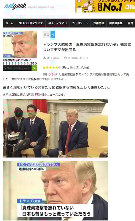 しかしながら当時、トランプ大統領の「真珠湾攻撃を忘れない」という発言のみが切り取られ、「日本は真珠湾攻撃でアメリカに不意打ちを仕掛けた卑怯者だ。恨んでいる。貿易で譲歩しろ」という意味ととられ、誤解が広がっていた。