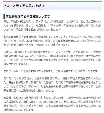 「麻生財務大臣の発言は「『人々は新聞も読まないんだろう』という愚民観も感じられ、あまり気持ちのいいものではない」