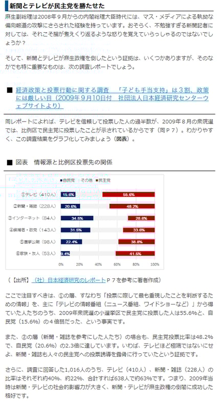 新聞とテレビが麻生政権を倒したという証拠は、いくつかありますが、そのなかでも特に重要なものは、次の調査レポートでしょう。