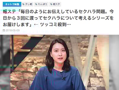 報ステ「毎日のようにお伝えしているセクハラ問題。今日から3回に渡ってセクハラについて考えるシリーズをお届けします」