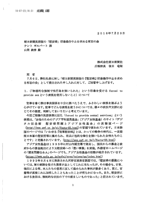ρ(・д・*)コレが朝日新聞社からの回答全文です。