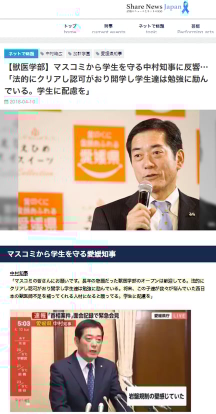 【獣医学部】マスコミから学生を守る中村知事に反響…「法的にクリアし認可がおり開学し学生達は勉強に励んでいる。学生に配慮を」