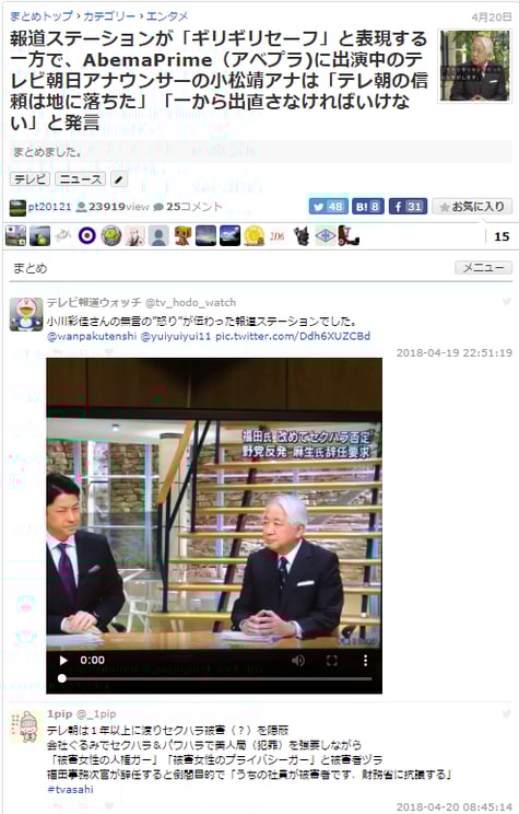 (※ 画像は togetter 2018.4.20 「道ステーションが「ギリギリセーフ」と表現する一方で・・・」より)