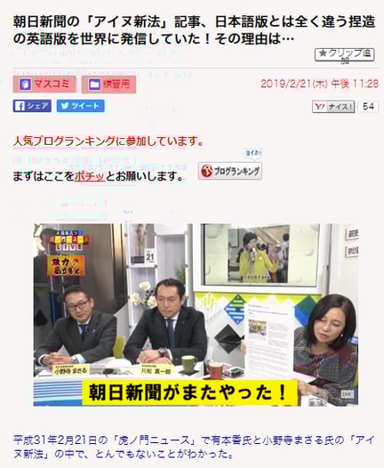 朝日新聞の「アイヌ新法」記事、日本語版とは全く違う捏造の英語版を世界に発信していた!その理由は…