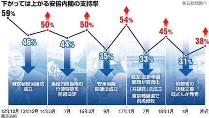 朝日新聞「世論意識、期待振りまく政権」と定期的に反政府活動