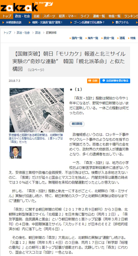折しも「森友・加計」騒動と軌を一にするがごとく、北朝鮮の「核・ミサイル」実験が加速し続け、特に、朝日新聞のスクープと北朝鮮の実験は奇妙なまでに“連動”していた。