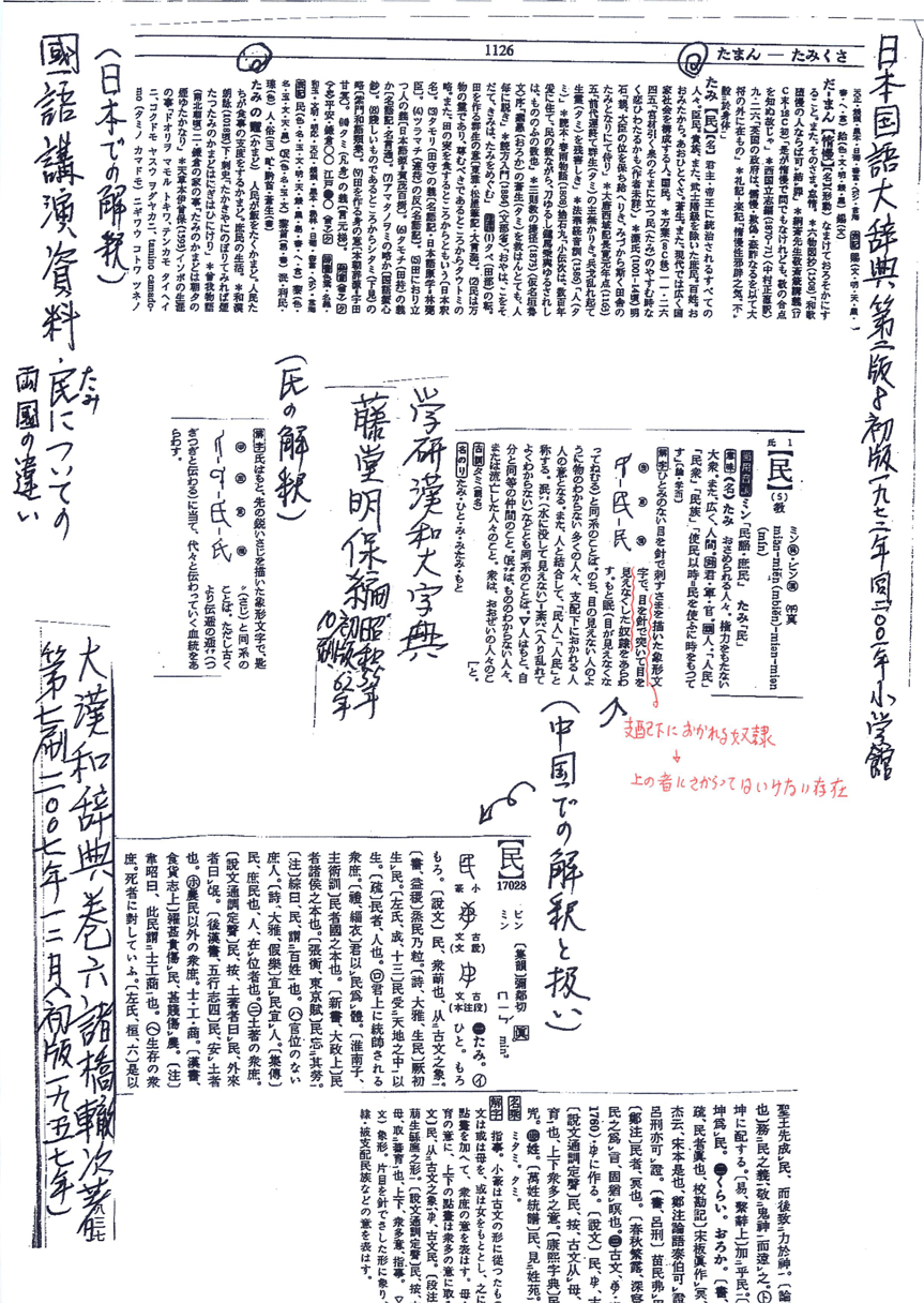 ・中国 「目を潰(つぶ)した奴隷」の象形文字からできているように、上の者に逆らってはいけない存在。