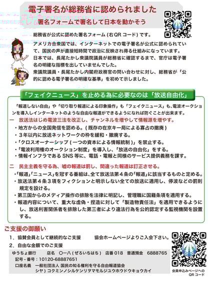 政治思想の左右関係なく、「放送自由化」実現のために共に起って頂けるなら、当協会を代表して応援させて頂く所存です。