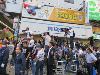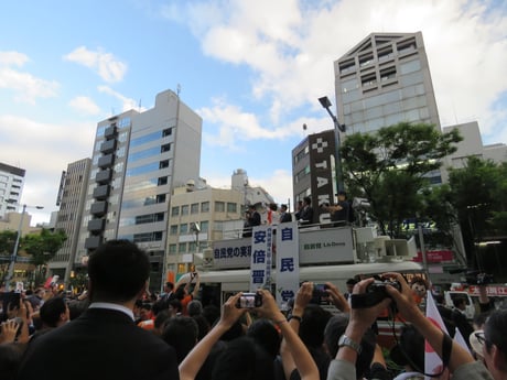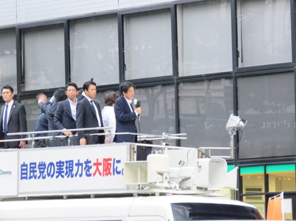 大阪市の南森町2丁目交差点前で開催された自民党の選挙応援演説の会場へ行ってきました。