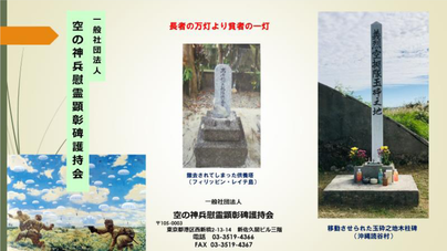 奥村康大さんは、一般社団法人 空の神兵慰霊顕彰碑護持会を発足され、英霊の慰霊顕彰碑の護持活動を行われています。