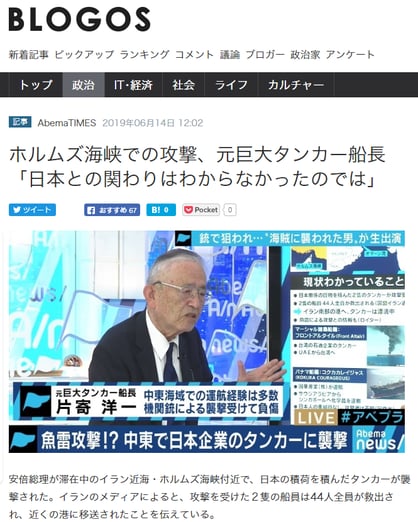 安倍首相のイラン訪問中に起きた日本籍タンカーへの攻撃を「安倍外交の失敗」と報じながら、イランが安倍首相を歓待したことを伝えない日本のマスコミ。