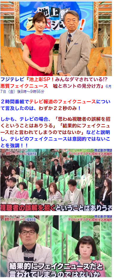 しかも、テレビの場合「思わぬ視聴者の誤解を招くということはありうる」「結果的にフェイクニュースだと言われてしまうのではないか」などと説明し、テレビのフェイクニュースは意図的ではないことを強調!!