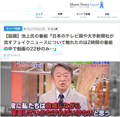 そして日本のテレビ局や大手新聞社が流すフェイクニュースについて触れたのは2時間の番組の中で動画の22秒のみ!