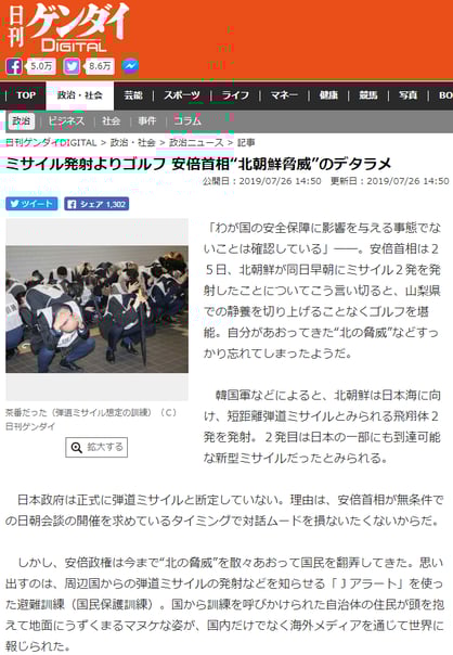 つまり、北朝鮮が発射した弾道ミサイルについて、安倍首相が担当者から正式に報告を受けたのは、ミサイル発射から丸4日以上経ってからだったのである。