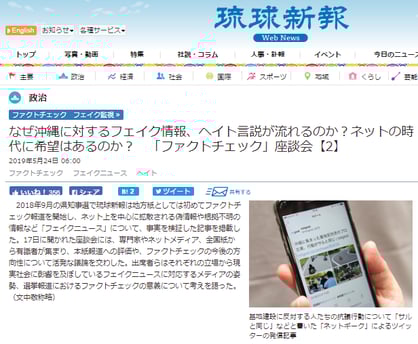 第二回フェイクニュース大賞で特別賞に輝いたフェイクニュースをはじめとして、多数のフェイクニュースを垂れ流している琉球新報が「フェイク監視」とは何の冗談か?