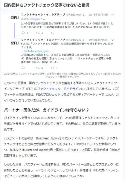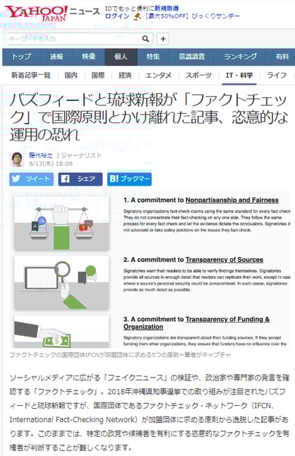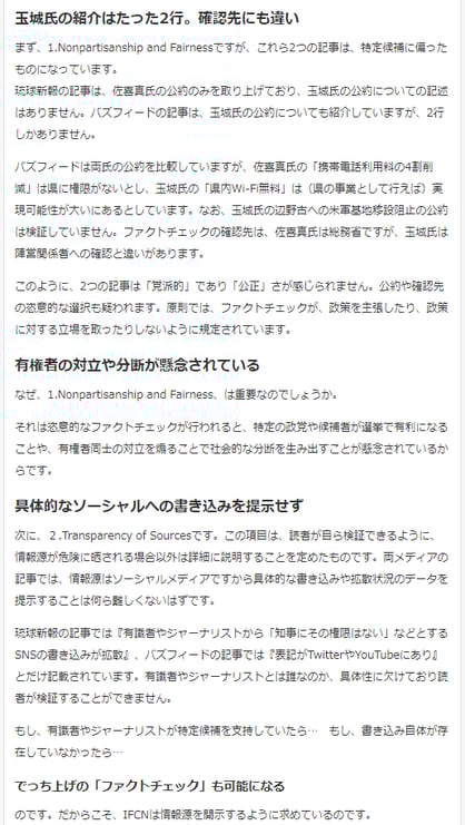 バズフィードと琉球新報が「ファクトチェック」で国際原則とかけ離れた記事、恣意的な運用の恐れ