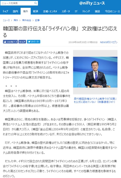 産経新聞を除くオールドメディアは、捏造された「従軍慰安婦問題」や「徴用工問題」は取り上げるのに、「韓国軍によるライダイハン問題」はほとんど報じませんね。