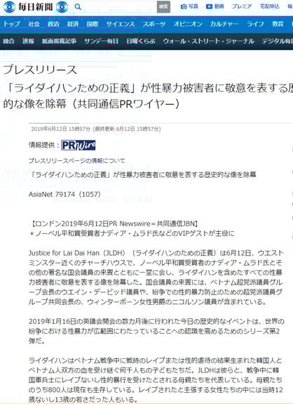 日本経済新聞や読売新聞もあまり取り上げていなかった「ライダイハン像」。