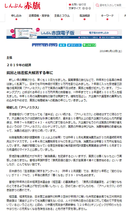 しんぶん赤旗「貧困と格差拡大解消する年に」
