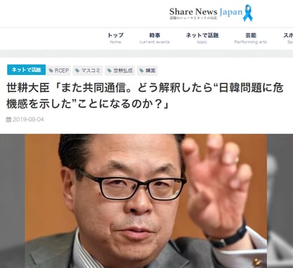 別の共同通信配信では見出しが「中国、日韓対立に危機感 北京でRCEP閣僚会合」となっていて、なお酷いです。