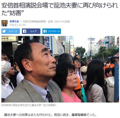 「相沢冬樹の視線 安倍首相の演説会場で繰り返される籠池夫妻への妨害」