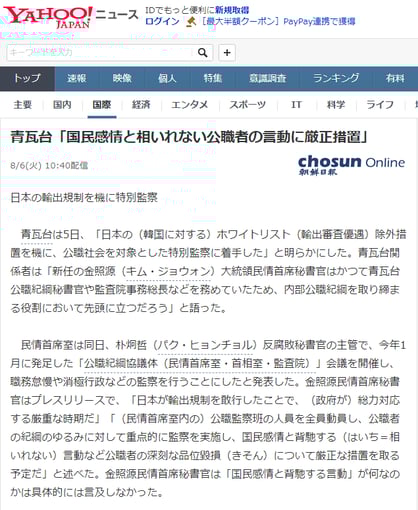 ----------------------- 朝鮮日報Online 2019.8.6