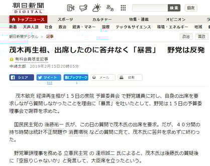 茂木再生相、出席したのに答弁なく「暴言」 野党は反発:朝日新聞デジタル https://t.co/P6pRyFqQyP