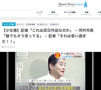まるで河村市長により、組織的検閲や忖度により「表現の自由」「アート」の機会が奪われたかの様な報道💢