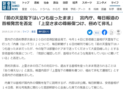 毎日新聞「前の天皇陛下はいつも座ったままだった」