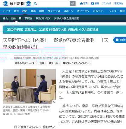 「天皇陛下への『内奏』 野党が写真公表批判 『天皇の政治利用だ』」