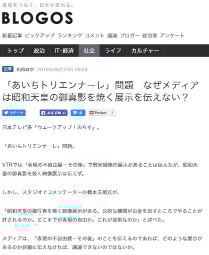 あいちトリエンナーレに関する報道、「報道しない自由」が絶賛発動中?