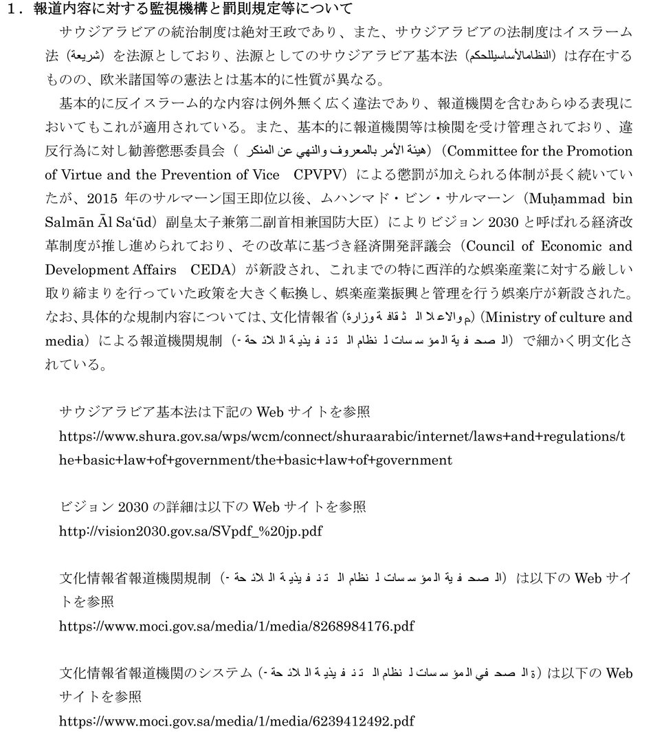 1.報道内容に対する監視機構と罰則規定等について