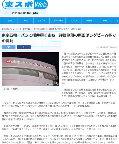 ラグビーW杯で評価を落とした櫻井には厳しい声が相次いでいる。
