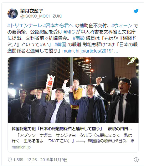 毎日新聞「韓国報道労組「日本の報道関係者と連帯して闘う」 表現の自由訴える集会」