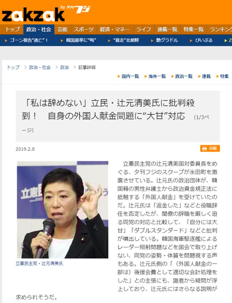 立憲・辻元清美議員 外国人献金に「辞めない」 2019.2.8